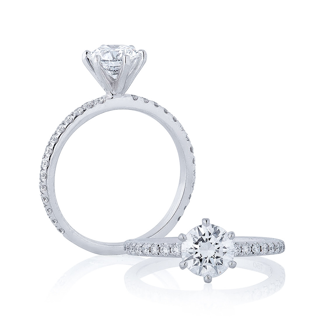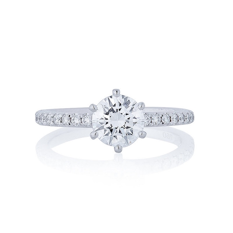 6 Claw Brilliant Cut Ring with Diamonds in the Band